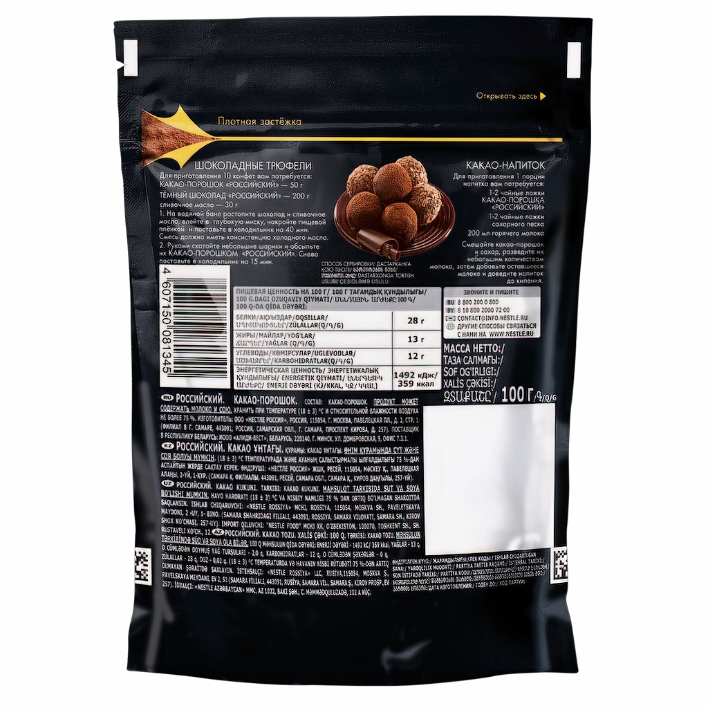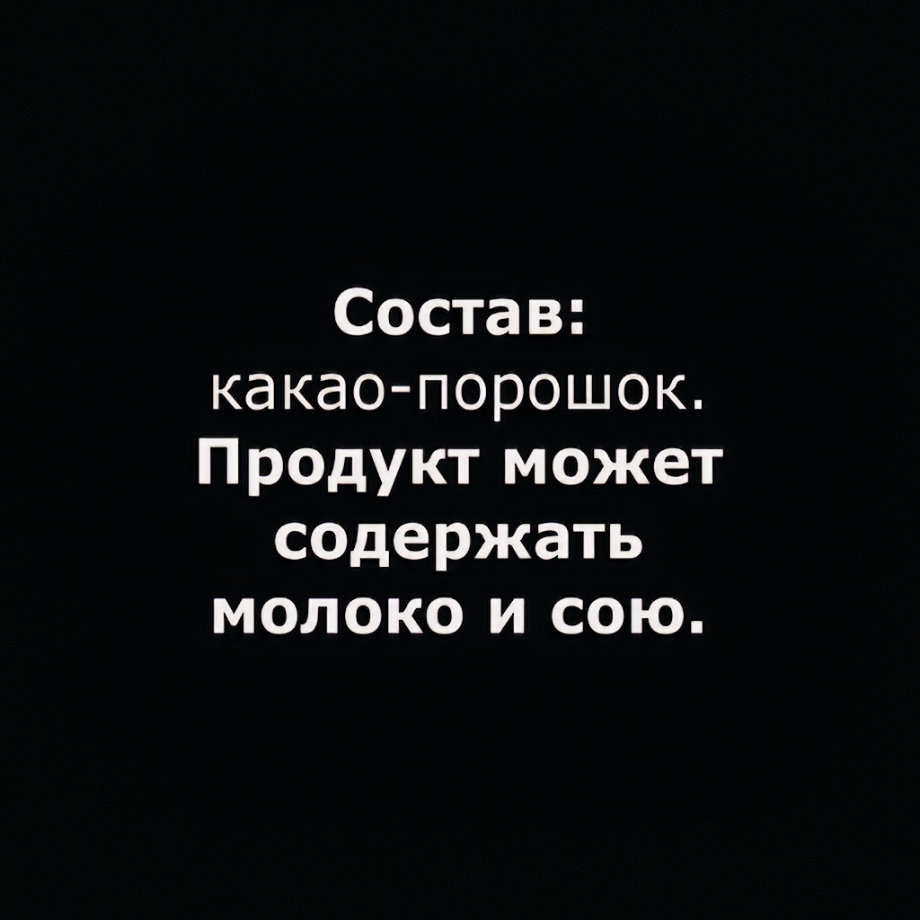 Состав: какао-порошок. Может содержать молоко и сою.